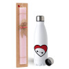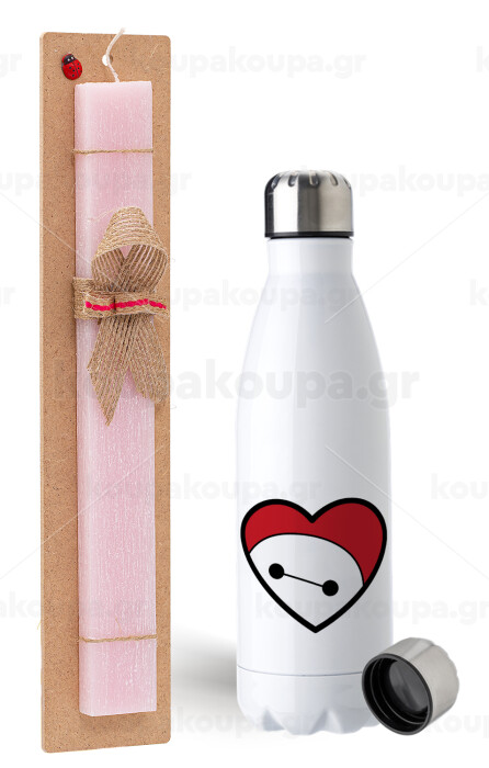Baymax heart, Easter Set, metallic stainless steel water bottle (750ml) & scented flat Easter candle (30cm) (PINK)