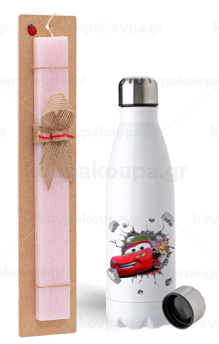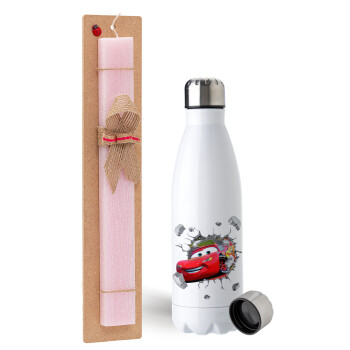 Brick McQueen, Easter Set, metallic stainless steel water bottle (750ml) & scented flat Easter candle (30cm) (PINK)