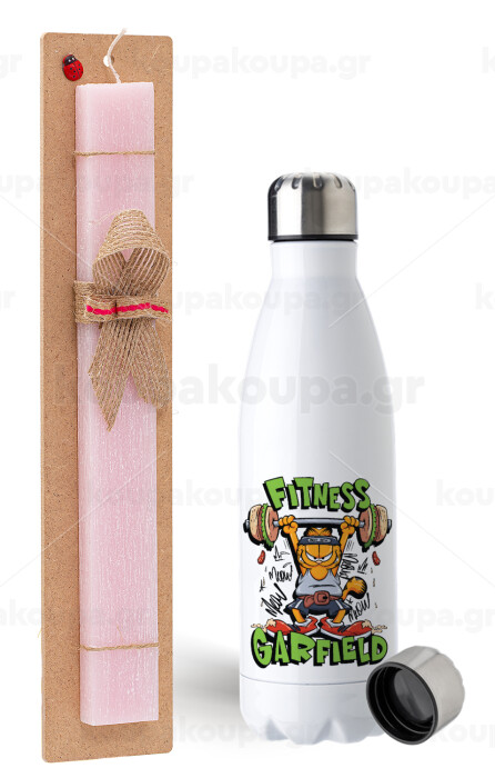Garfield Fitness, Easter Set, metallic stainless steel water bottle (750ml) & scented flat Easter candle (30cm) (PINK)
