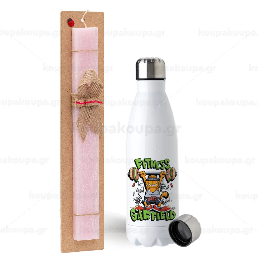 Garfield Fitness, Easter Set, metallic stainless steel water bottle (750ml) & scented flat Easter candle (30cm) (PINK)