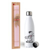 Le Petit Nicolas, Easter Set, metallic stainless steel water bottle (750ml) & scented flat Easter candle (30cm) (PINK)