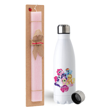 My Little Pony, Easter Set, metallic stainless steel water bottle (750ml) & scented flat Easter candle (30cm) (PINK)