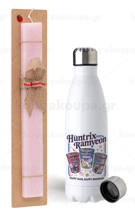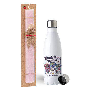 Ramyeon Huntrix, Easter Set, metallic stainless steel water bottle (750ml) & scented flat Easter candle (30cm) (PINK)