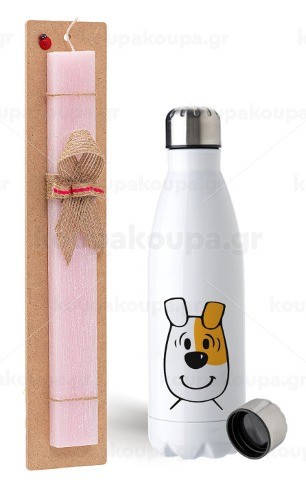 reksio bolek i lolek, Easter Set, metallic stainless steel water bottle (750ml) & scented flat Easter candle (30cm) (PINK)
