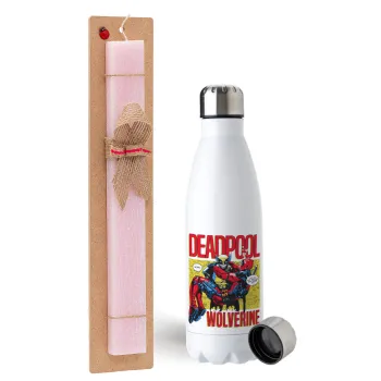 Superhero Deadpool Wolverine, Easter Set, metallic stainless steel water bottle (750ml) & scented flat Easter candle (30cm) (PINK)