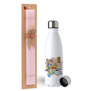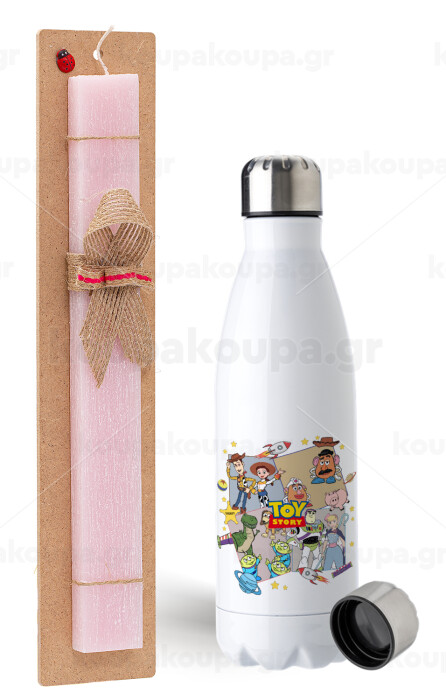 toystory characters, Easter Set, metallic stainless steel water bottle (750ml) & scented flat Easter candle (30cm) (PINK)