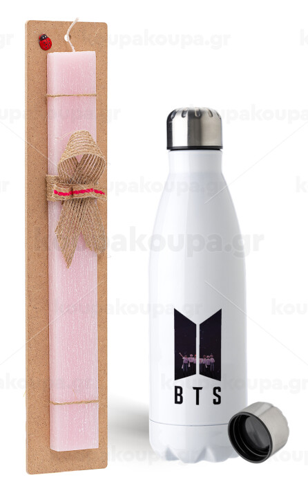 BTS, Easter Set, metallic stainless steel water bottle (750ml) & scented flat Easter candle (30cm) (PINK)