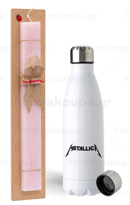Metallica, Easter Set, metallic stainless steel water bottle (750ml) & scented flat Easter candle (30cm) (PINK)