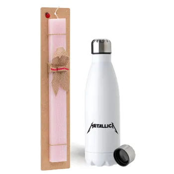 Metallica, Easter Set, metallic stainless steel water bottle (750ml) & scented flat Easter candle (30cm) (PINK)