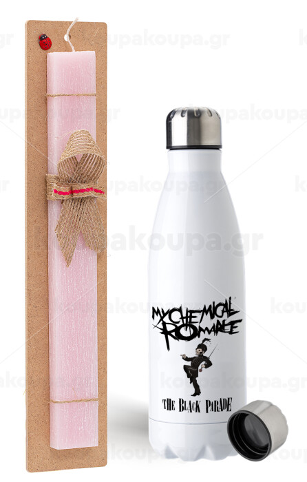 My Chemical Romance Black Parade, Easter Set, metallic stainless steel water bottle (750ml) & scented flat Easter candle (30cm) (PINK)