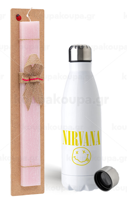 Nirvana, Easter Set, metallic stainless steel water bottle (750ml) & scented flat Easter candle (30cm) (PINK)