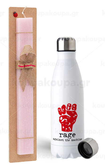 Rage against the machine, Easter Set, metallic stainless steel water bottle (750ml) & scented flat Easter candle (30cm) (PINK)