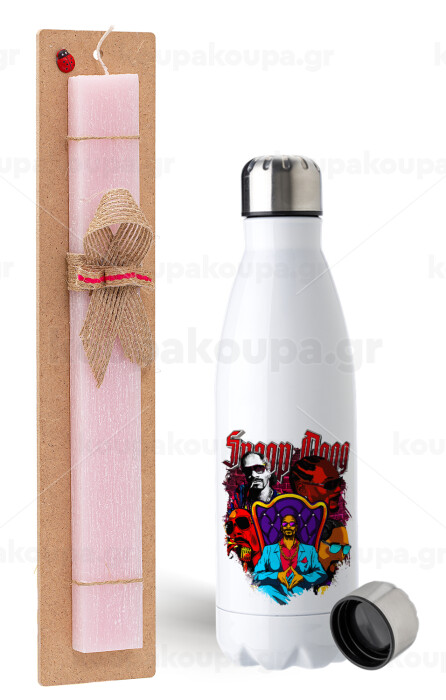 Snoop Dogg, Easter Set, metallic stainless steel water bottle (750ml) & scented flat Easter candle (30cm) (PINK)