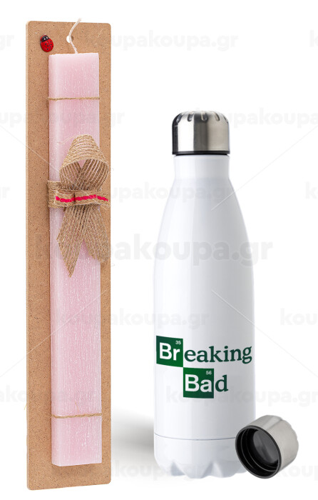 Breaking Bad, Easter Set, metallic stainless steel water bottle (750ml) & scented flat Easter candle (30cm) (PINK)