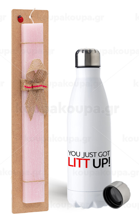 Suits You Just Got Litt Up! , Easter Set, metallic stainless steel water bottle (750ml) & scented flat Easter candle (30cm) (PINK)