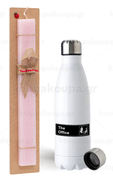 The office, Easter Set, metallic stainless steel water bottle (750ml) & scented flat Easter candle (30cm) (PINK)
