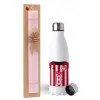 Ολυμπιακός εμφάνιση, Easter Set, metallic stainless steel water bottle (750ml) & scented flat Easter candle (30cm) (PINK)