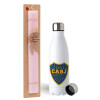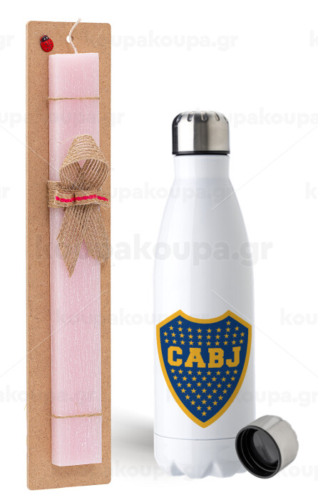 Club Atlético Boca Juniors, Easter Set, metallic stainless steel water bottle (750ml) & scented flat Easter candle (30cm) (PINK)
