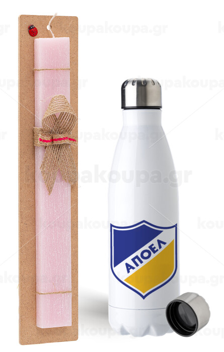 FC ΑΠΟΕΛ Λευκωσίας, Easter Set, metallic stainless steel water bottle (750ml) & scented flat Easter candle (30cm) (PINK)
