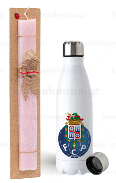 FCP, Easter Set, metallic stainless steel water bottle (750ml) & scented flat Easter candle (30cm) (PINK)