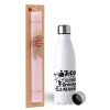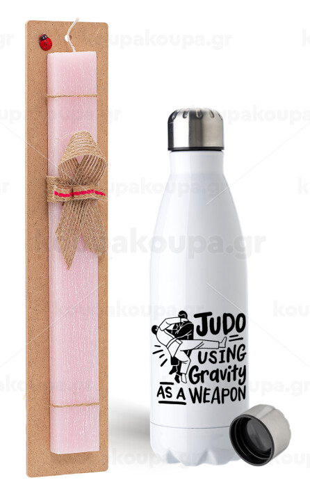 Judo using gravity as a weapon, Easter Set, metallic stainless steel water bottle (750ml) & scented flat Easter candle (30cm) (PINK)