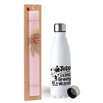 Judo using gravity as a weapon, Easter Set, metallic stainless steel water bottle (750ml) & scented flat Easter candle (30cm) (PINK)