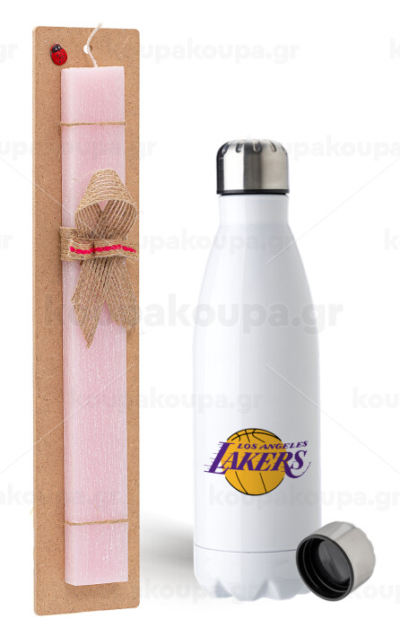 Lakers, Easter Set, metallic stainless steel water bottle (750ml) & scented flat Easter candle (30cm) (PINK)