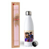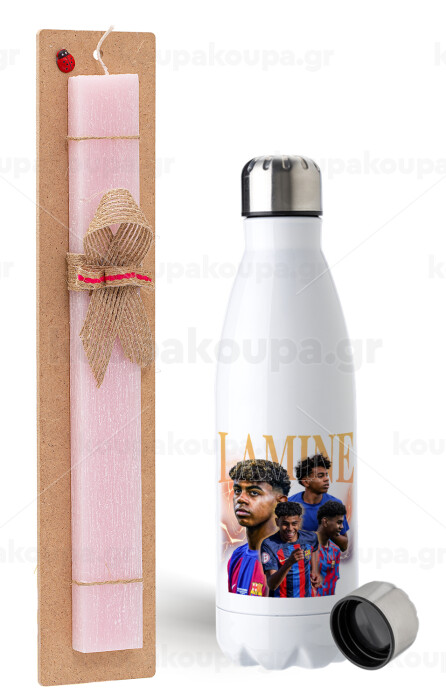lamine yamal FCB, Easter Set, metallic stainless steel water bottle (750ml) & scented flat Easter candle (30cm) (PINK)