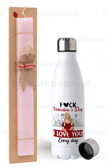 I love You Everyday , Easter Set, metallic stainless steel water bottle (750ml) & scented flat Easter candle (30cm) (PINK)