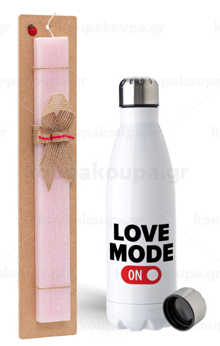 LOVE MODE ON, Easter Set, metallic stainless steel water bottle (750ml) & scented flat Easter candle (30cm) (PINK)
