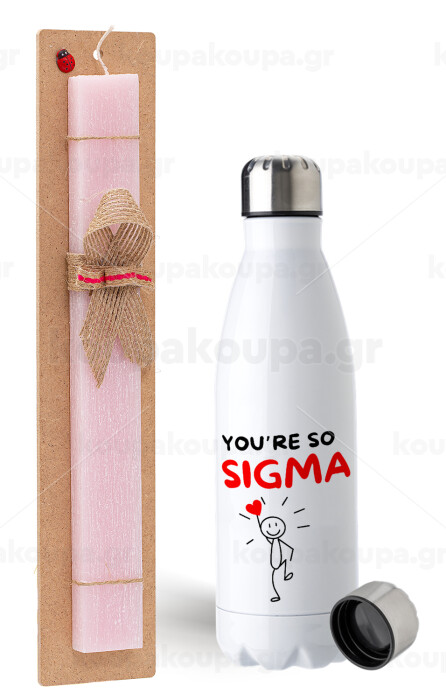 Sigma Valentine's Day , Easter Set, metallic stainless steel water bottle (750ml) & scented flat Easter candle (30cm) (PINK)