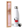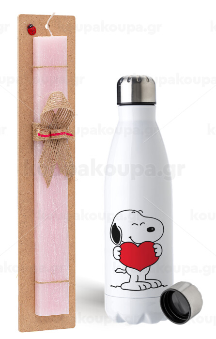 Snoopy takemy heart, Easter Set, metallic stainless steel water bottle (750ml) & scented flat Easter candle (30cm) (PINK)