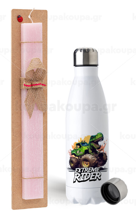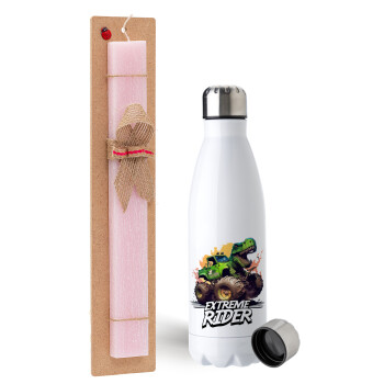 Extreme rider Dyno, Easter Set, metallic stainless steel water bottle (750ml) & scented flat Easter candle (30cm) (PINK)