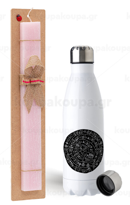 Δίσκος Φαιστού, Easter Set, metallic stainless steel water bottle (750ml) & scented flat Easter candle (30cm) (PINK)