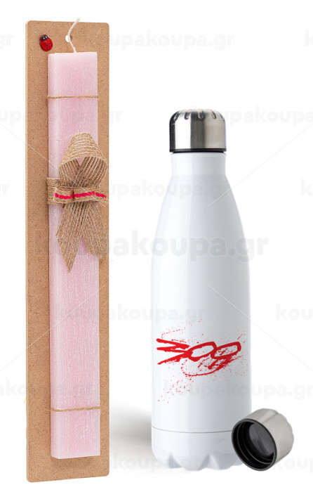 Οι 300 της Σπάρτης, Easter Set, metallic stainless steel water bottle (750ml) & scented flat Easter candle (30cm) (PINK)