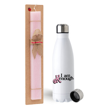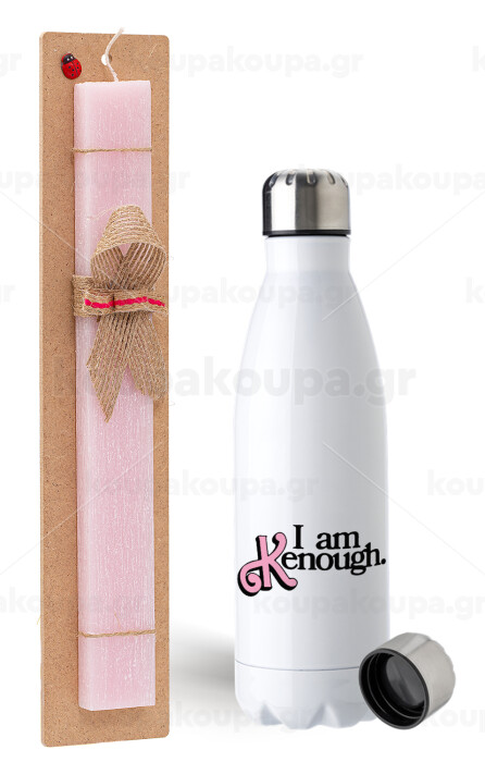 Barbie, i am Kenough, Easter Set, metallic stainless steel water bottle (750ml) & scented flat Easter candle (30cm) (PINK)