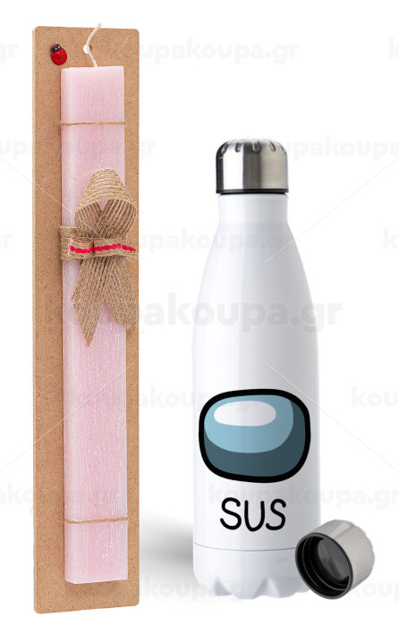 Among US SUS!!!, Easter Set, metallic stainless steel water bottle (750ml) & scented flat Easter candle (30cm) (PINK)