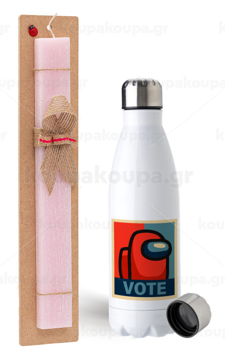 Among US VOTE, Easter Set, metallic stainless steel water bottle (750ml) & scented flat Easter candle (30cm) (PINK)