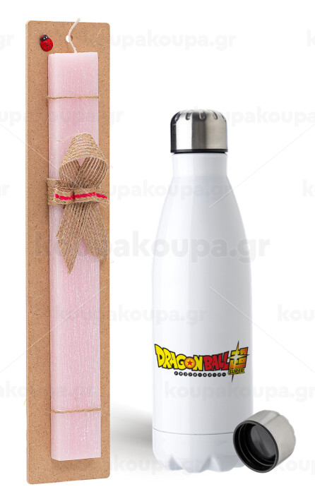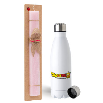 DragonBallZ, Easter Set, metallic stainless steel water bottle (750ml) & scented flat Easter candle (30cm) (PINK)