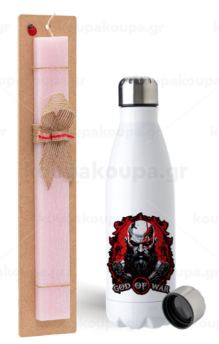 God of war, Easter Set, metallic stainless steel water bottle (750ml) & scented flat Easter candle (30cm) (PINK)