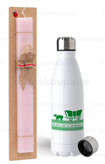 Oregon Trail, cov... edition, Easter Set, metallic stainless steel water bottle (750ml) & scented flat Easter candle (30cm) (PINK)