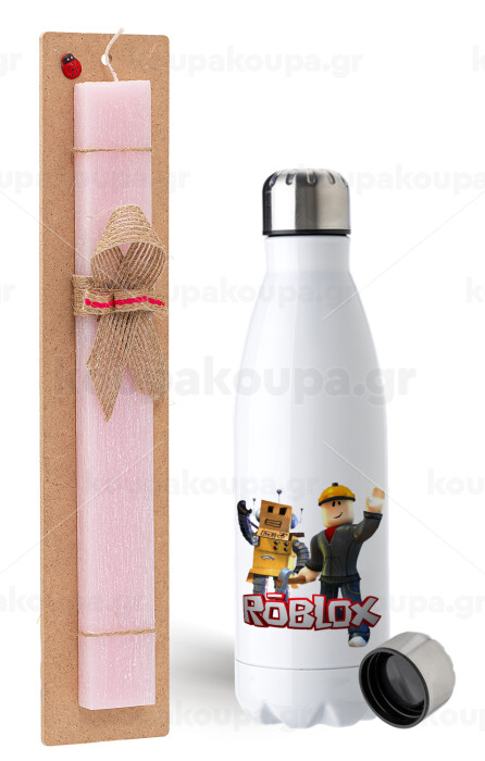 Roblox, Easter Set, metallic stainless steel water bottle (750ml) & scented flat Easter candle (30cm) (PINK)