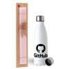 GitHub, Easter Set, metallic stainless steel water bottle (750ml) & scented flat Easter candle (30cm) (PINK)