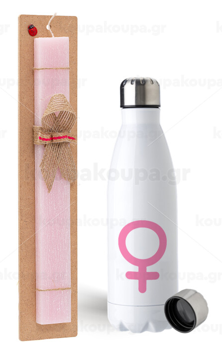 FEMALE, Easter Set, metallic stainless steel water bottle (750ml) & scented flat Easter candle (30cm) (PINK)