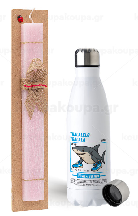 Tralalero Tralala, Easter Set, metallic stainless steel water bottle (750ml) & scented flat Easter candle (30cm) (PINK)