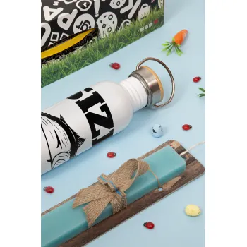 Size matters, Easter Set, SS Metallic water bottle (620ml, stainless steel) & scented flat Easter candle (30cm) (TURQUOISE)