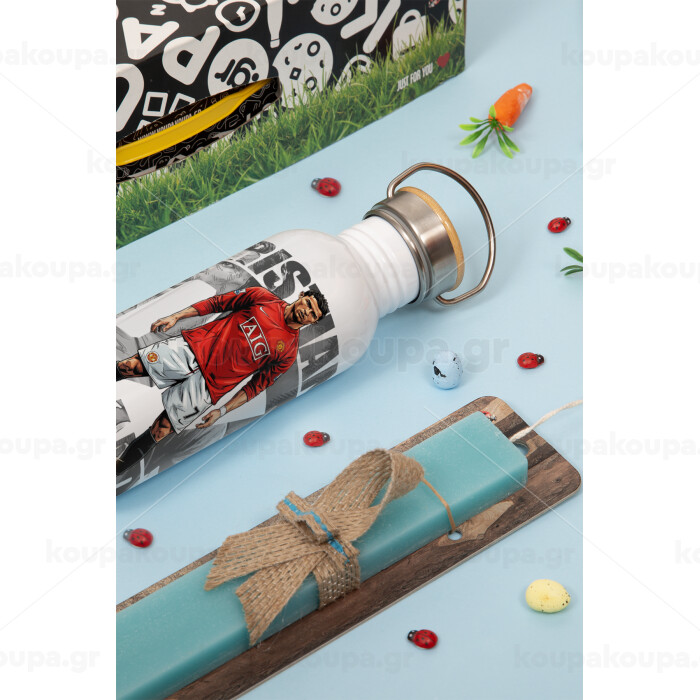 Cristiano Ronaldo (Κριστιάνο Ρονάλντο), Easter Set, SS Metallic water bottle (620ml, stainless steel) & scented flat Easter candle (30cm) (TURQUOISE)