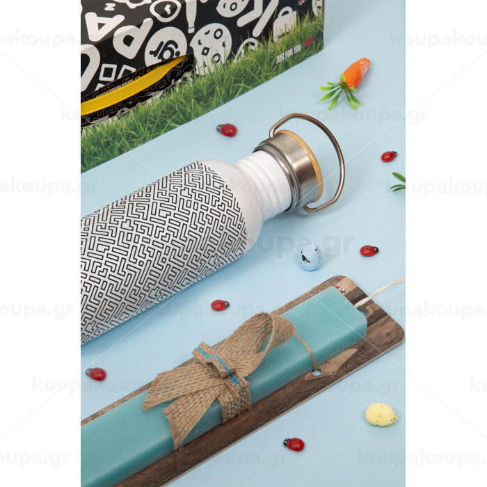 Doodle Maze, Easter Set, SS Metallic water bottle (620ml, stainless steel) & scented flat Easter candle (30cm) (TURQUOISE)