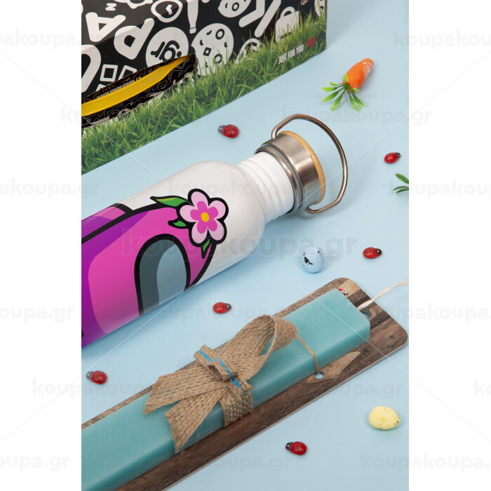 Among US girl, Easter Set, metallic silver aluminum water bottle (500ml) & scented flat Easter candle (30cm) (TURQUOISE)
