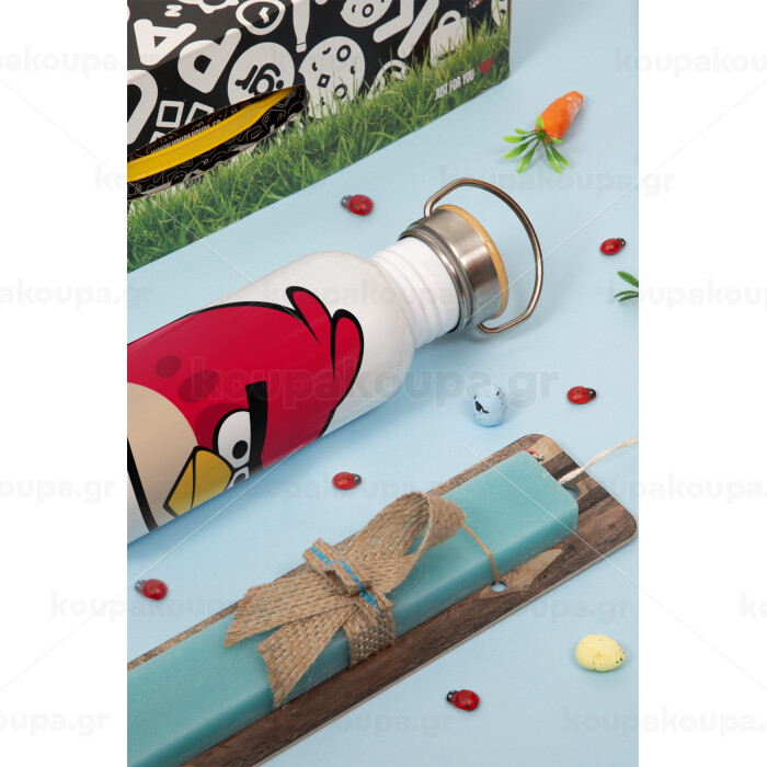 Angry birds Terence, Easter Set, metallic silver aluminum water bottle (500ml) & scented flat Easter candle (30cm) (TURQUOISE)